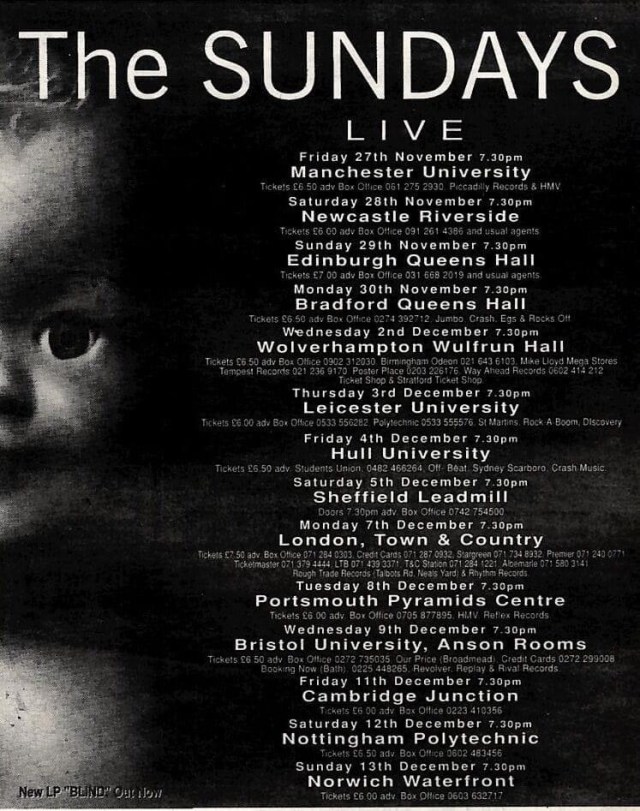 see http://www.setlist.fm/setlist/the-sundays/1992/polytechnic-leicester-england-23c3c0b7.html for likely setlist and the above video playlist from Town & Country a week later