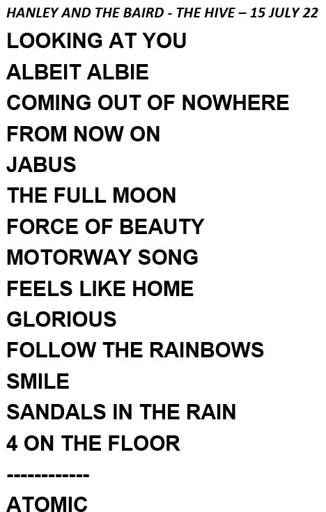 The first of a two gig East of Scotland ‘tour’ at Hive. Thanks to everyone who came out and Paul Gilbody for opening for us. One new original song ‘Motorway Song’ sounded great and two new covers in ‘From Now On’ and a belting encore version of ‘Atomic”. Really enjoyed that, cheers all!