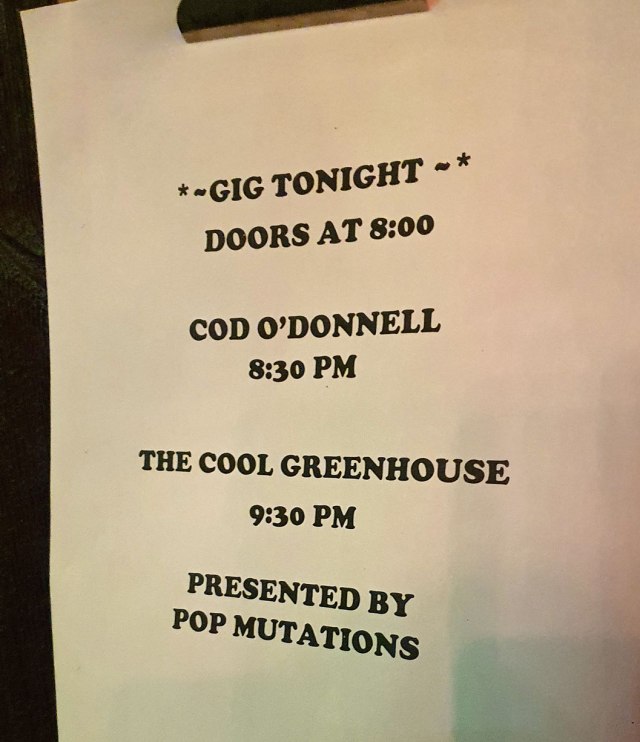 I was much more entertained by the mad stylings and songs of support act Cod O’Donnell who I will definitely look out for more now. Cool small (very small) venue.
