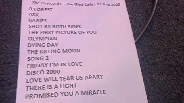 It was great to be back at The Glad Cafe in Glasgow last night. Someone must have turned on the heating as it was unbelievably hot! Being in Glasgow we had to play Orange Juice’s ‘Dying Day’ which was from the Postcards Records era from where we took our name. £600 raised for The RISE Collective , thanks to everyone that came down.