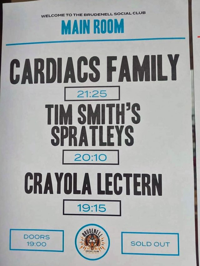 3 very special ‘reunion’ shows in England had been arranged to celebrate his life, entitled ‘Sing To Tim’, and the Cardiacs fanbase (or ‘the pond’ as known) were so ecstatic they sold out immediately! Only at the very last minute did I think of going to the final show in Leeds. At 1pm on the day I thought ‘I’ve always wanted to go to the Brudenell Social Club … and why not?!’ I asked on a Facebook group if anyone had a spare ticket and took the mad decision to drive from Edinburgh to Leeds right away!